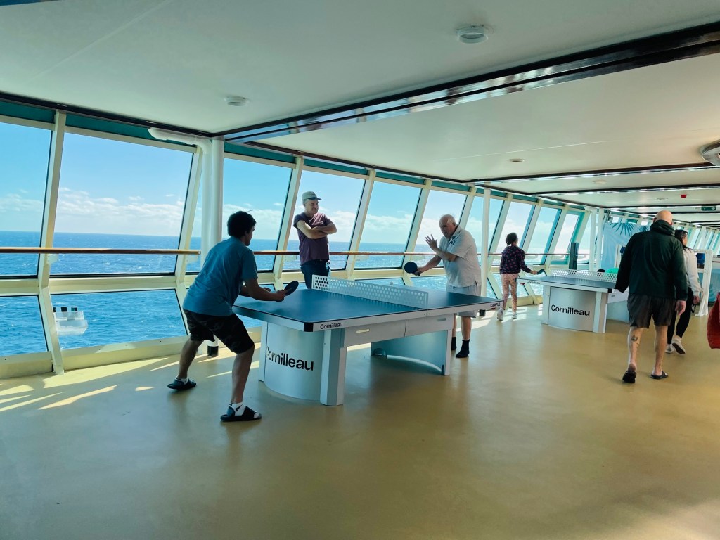 All in all, it was a fun week that brought a lively mix of dancing, dining, theater, ping pong, trivia, clubbing, touring, tanning and old-person deck walking. The only thing we missed was shuffle board. I didn’t cook a single dish, drive a mile or wash the sheets. What a gift!