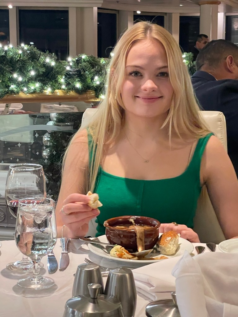 Thank you so so much for taking us on the cruise. I had so much fun at our dinners, playing trivia, and especially when I (finally) went to see the show with you. I wish we could go back and do it all again! I’m so glad I was able to be there 💖