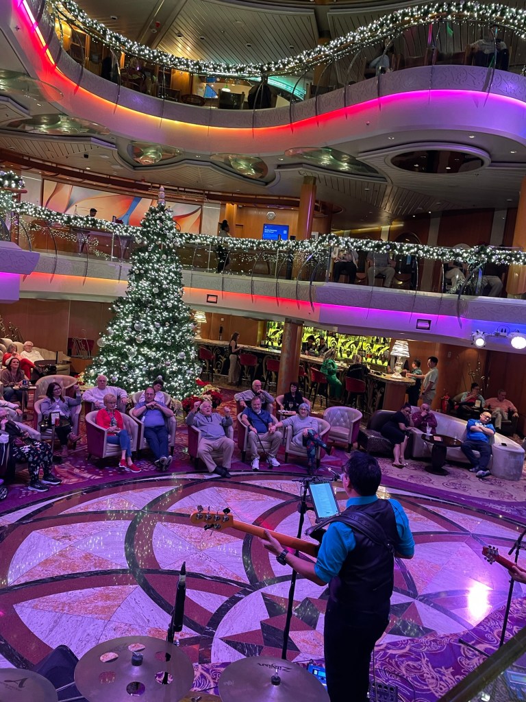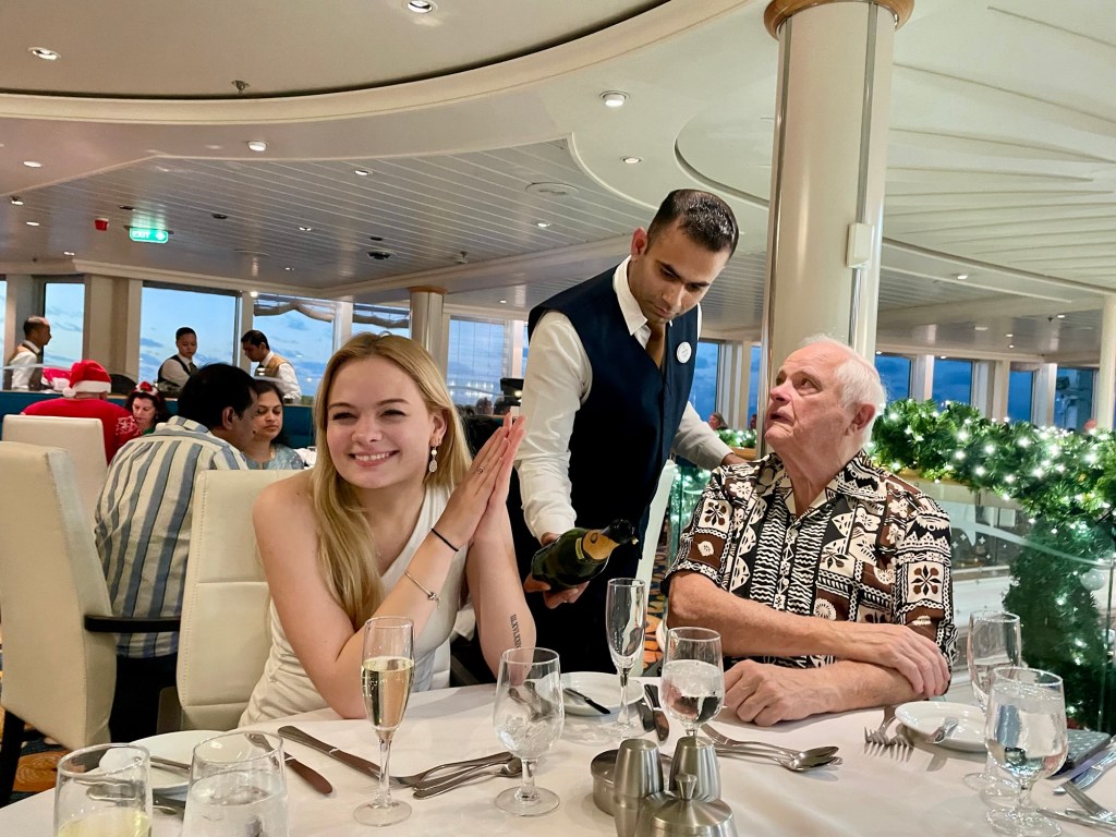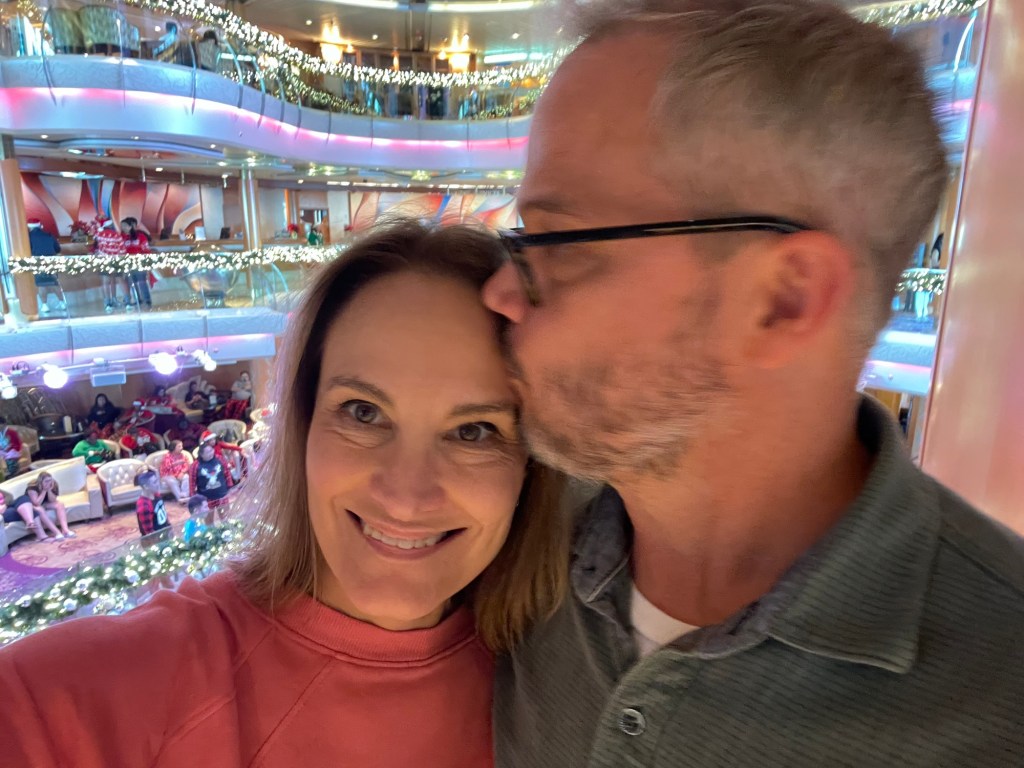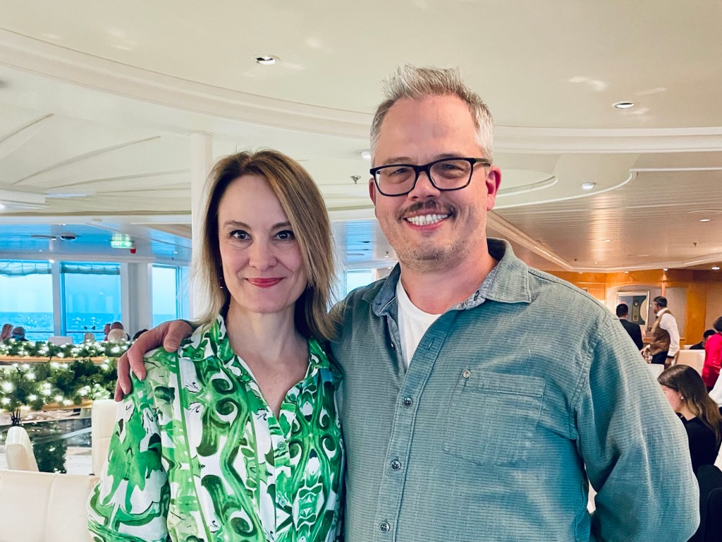 Heather – the tour in Charleston, dancing with Poppy in general and with Kevin at the silent disco, morning coffees on the deck, stockings and revealing the Indonesia trip, sitting with Kevin on the top deck in the sunshine