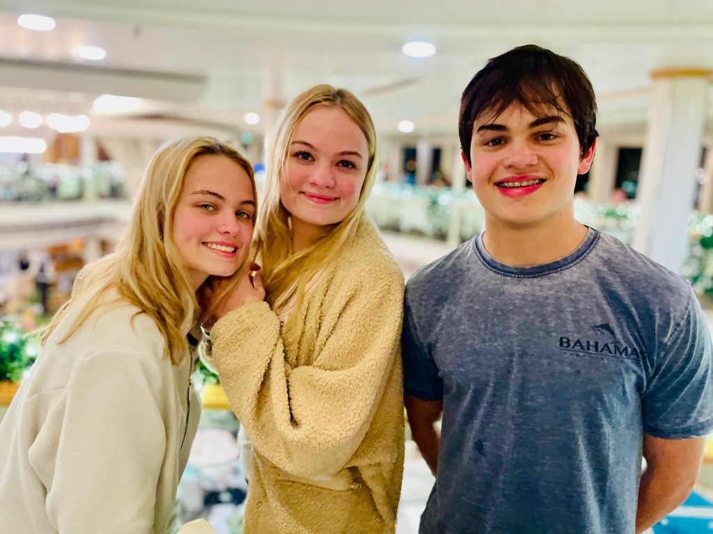 Poppy – being with the family, dancing, playing chess with Hugh and ping pong with Finn, dinners and talking over the day with everyone, playing volleyball with Finn in the Grand Bahamas