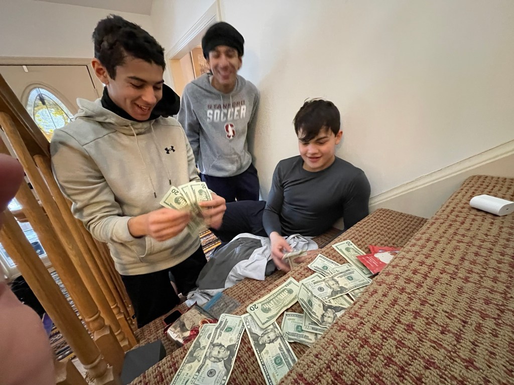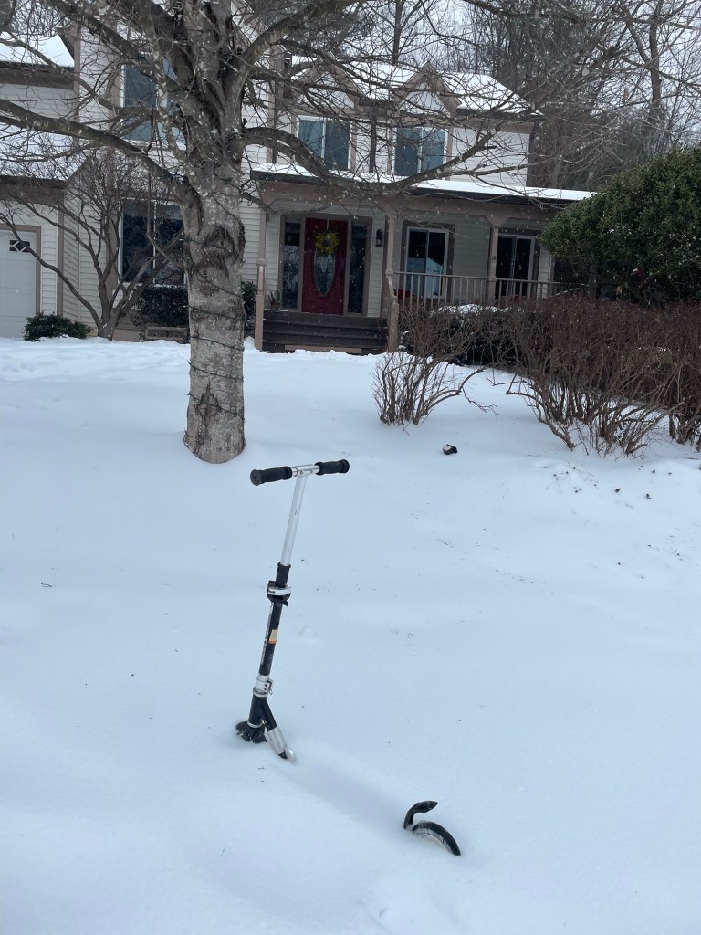 We’re all fine and, in some cases, thrilled by the “bank” rolling in, well earned through heavy shoveling. My favorite image is the scooter. Teenagers will try anything.