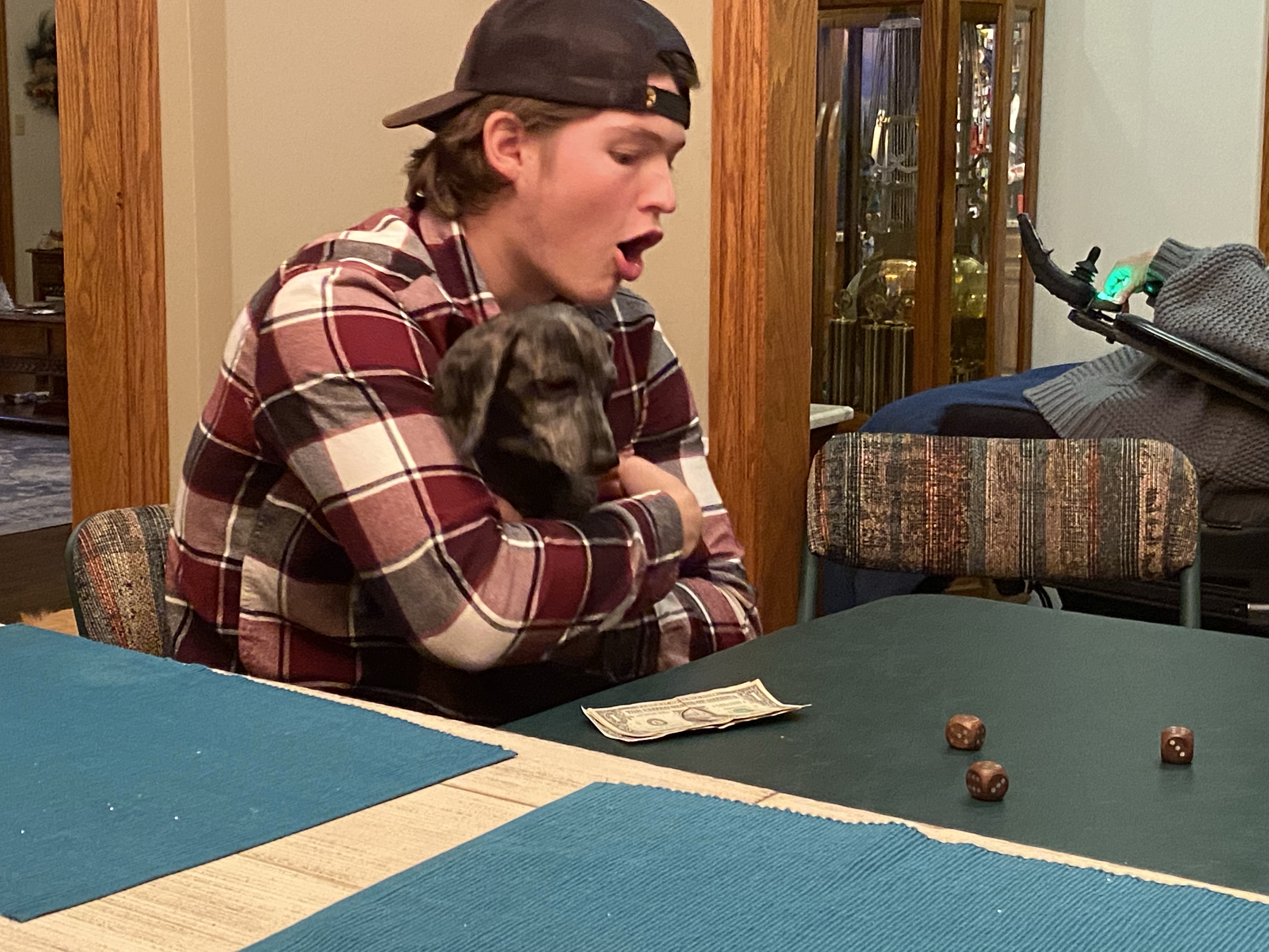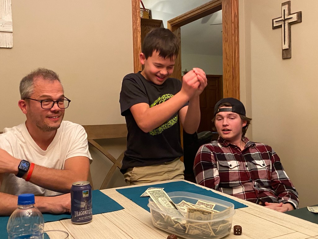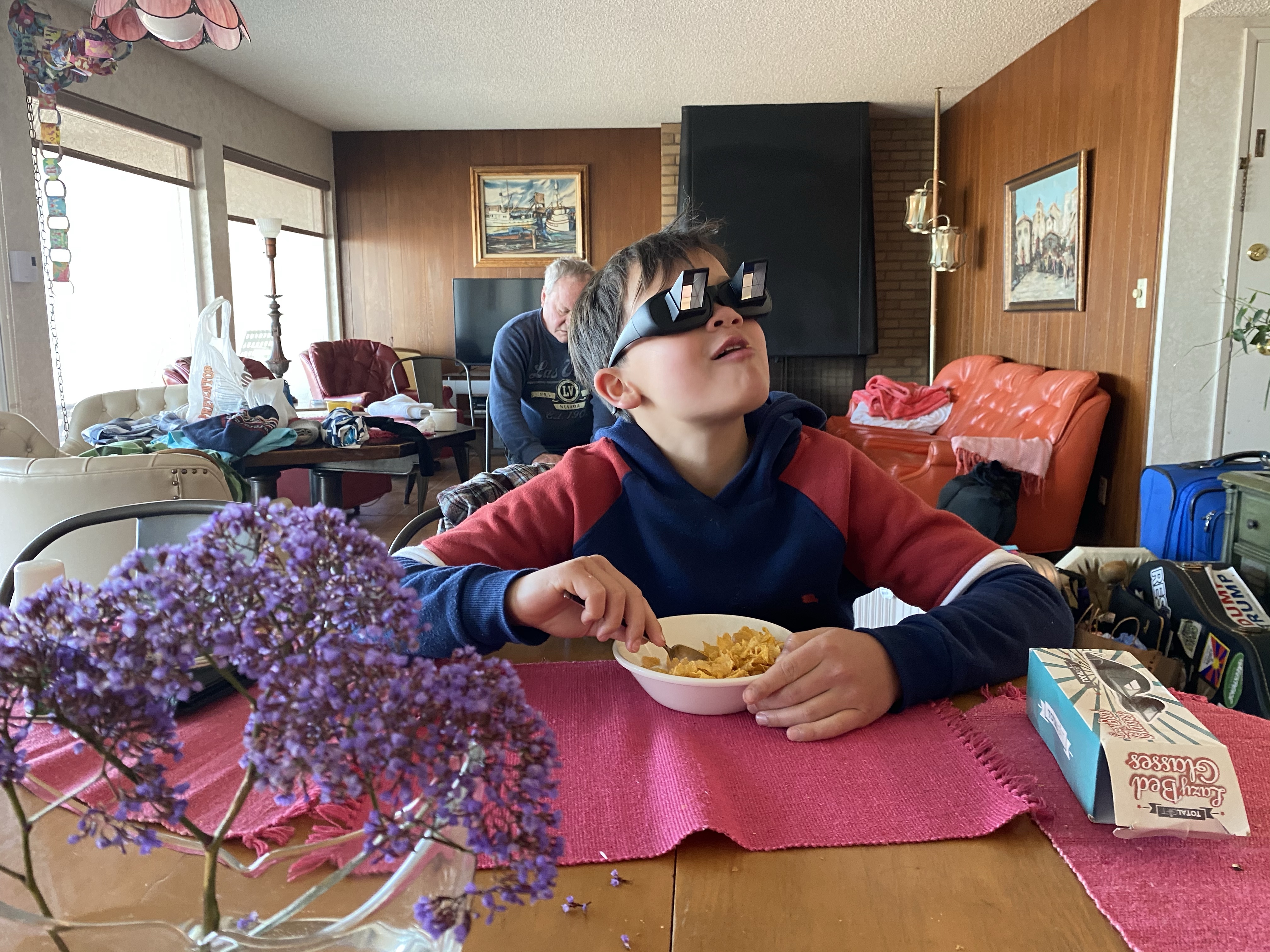 Kevin- basketball and breakfast bar at the hotel and joking around with family.