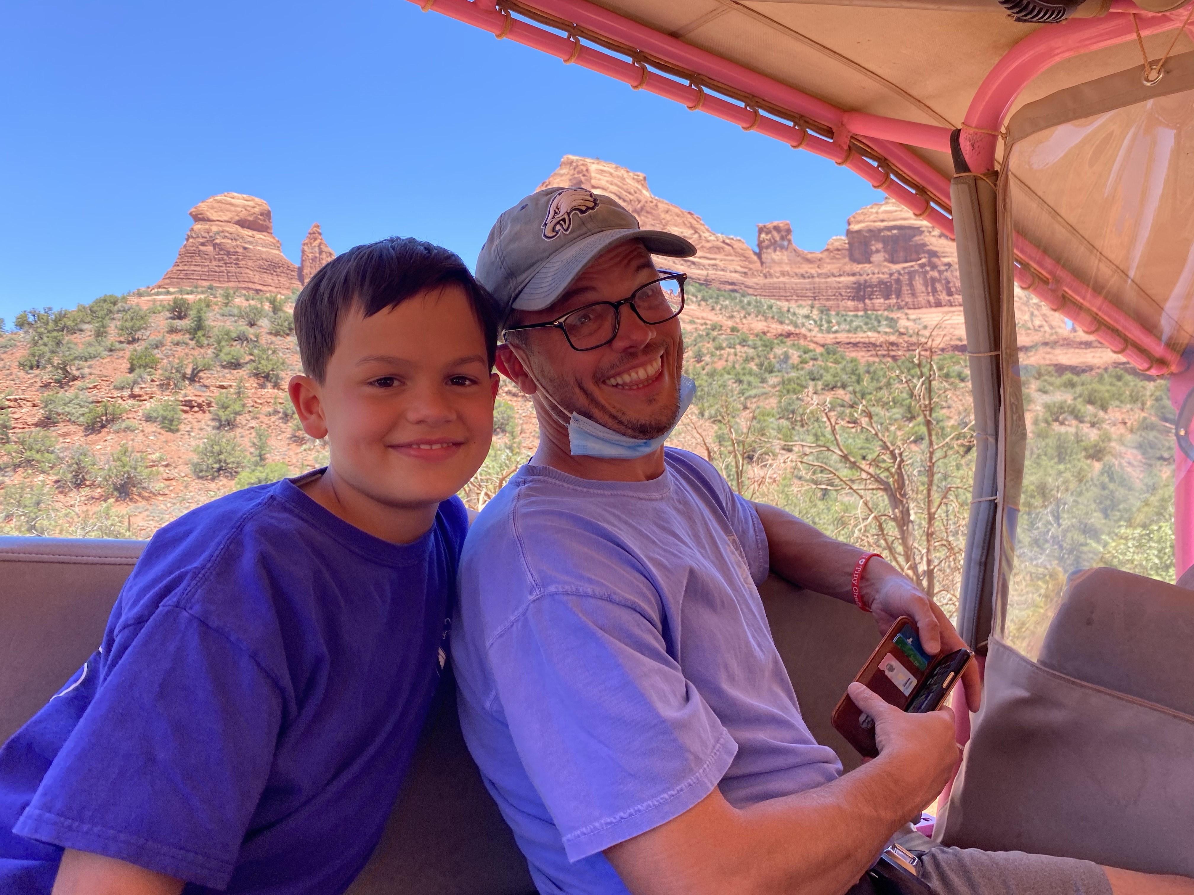 Kev – hiking Devil’s Bridge with Finn and listening to him complain about his dry lips; being with Tatum; the first dinner at the hotel on the balcony; spending time with Goodnews and Doug at dinner in Oak Creek Valley.