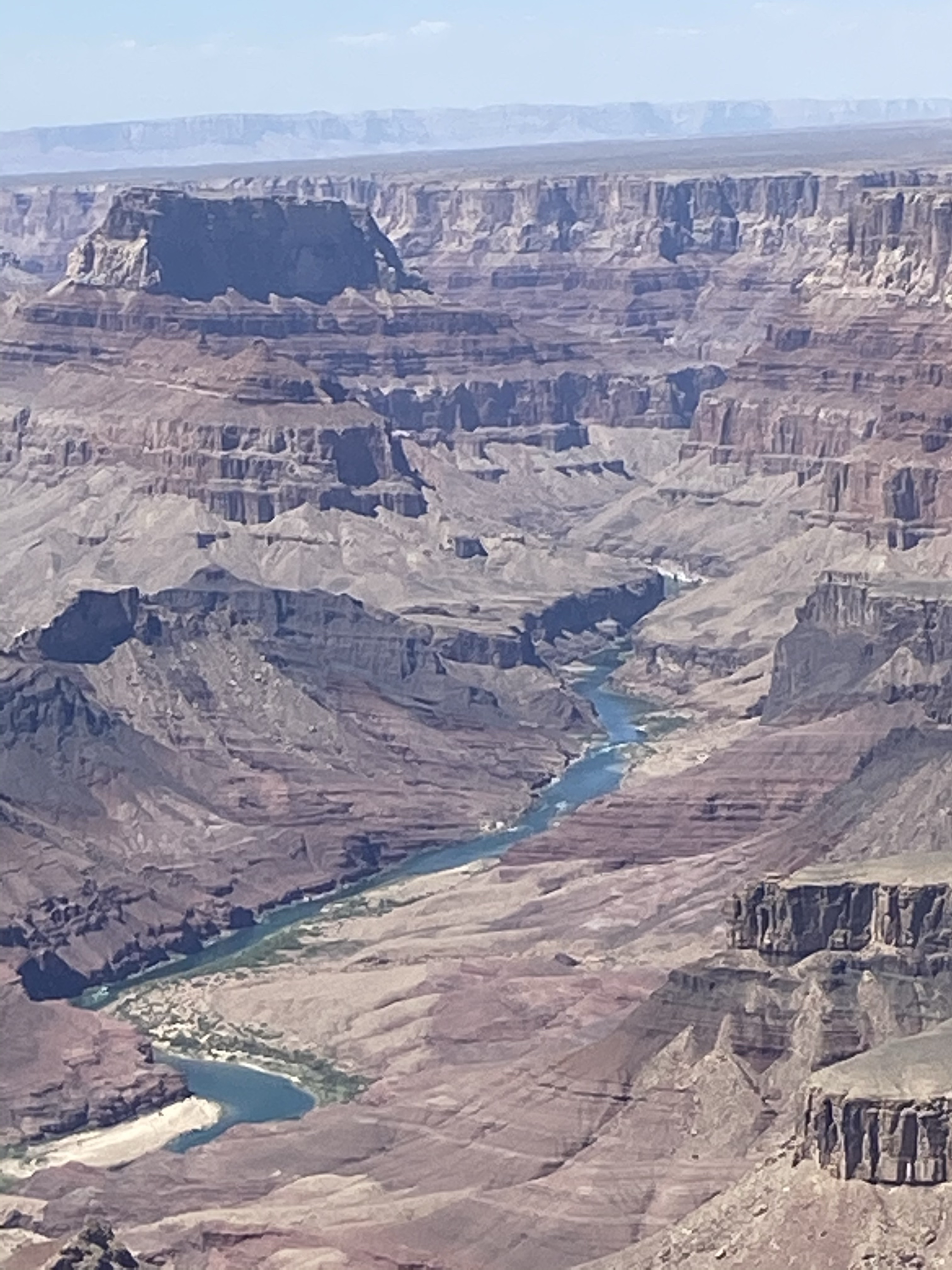 There is of course not much to compare to the incomparable Grand Canyon. We took a bus tour because of the two hour drive each way and because I’d read about long lines to enter, sure to be an issue on a holiday weekend. I also didn’t know exactly what to do and where to go to “see” such a vast expanse. We were as nimble as mountain goats compared to our four elderly van companions, one of whom was on an oxygen machine, so we did zero hikes, regretfully. But we still saw the views of 24-miles-across expanse. Even though the river is the entire reason for the canyon, it was still somehow surprising to see the smoky emerald color of the Colorado River curving mystically through the dry, paprika-colored rocks.