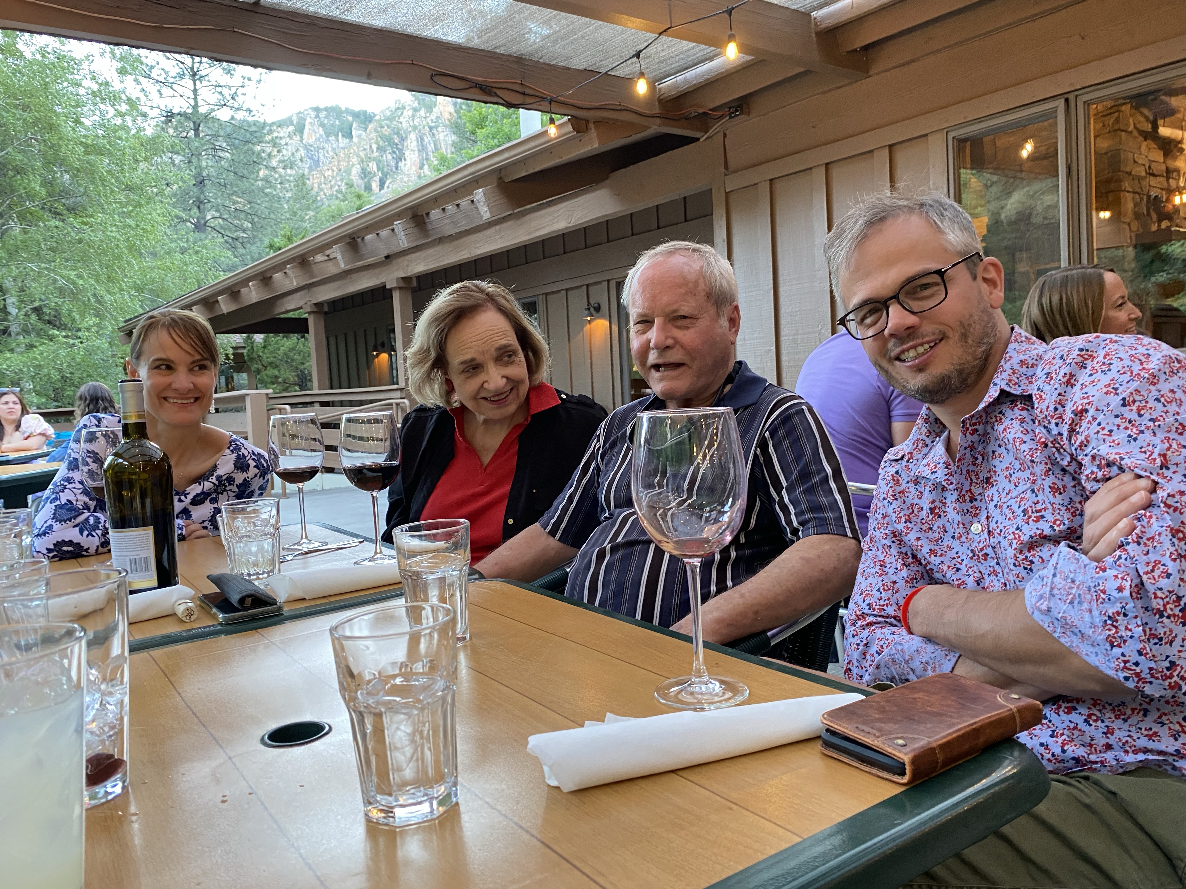 The rocks are not bright like a cherry tomato or deep red like a margherita pizza sauce, but more orange-red like a robin’s breast caught in a glow of sunlight. One thing I didn’t expect in Arizona or Sedona was green. Along the Oak Creek Valley, it’s all sycamores and pines and oak trees braiding up the cliffs and down to the creek bed. It would be an awesome place to camp. That’s where we ate dinner at The Table at Junipine, which felt a little like dining on a patio in the alps for some reason.