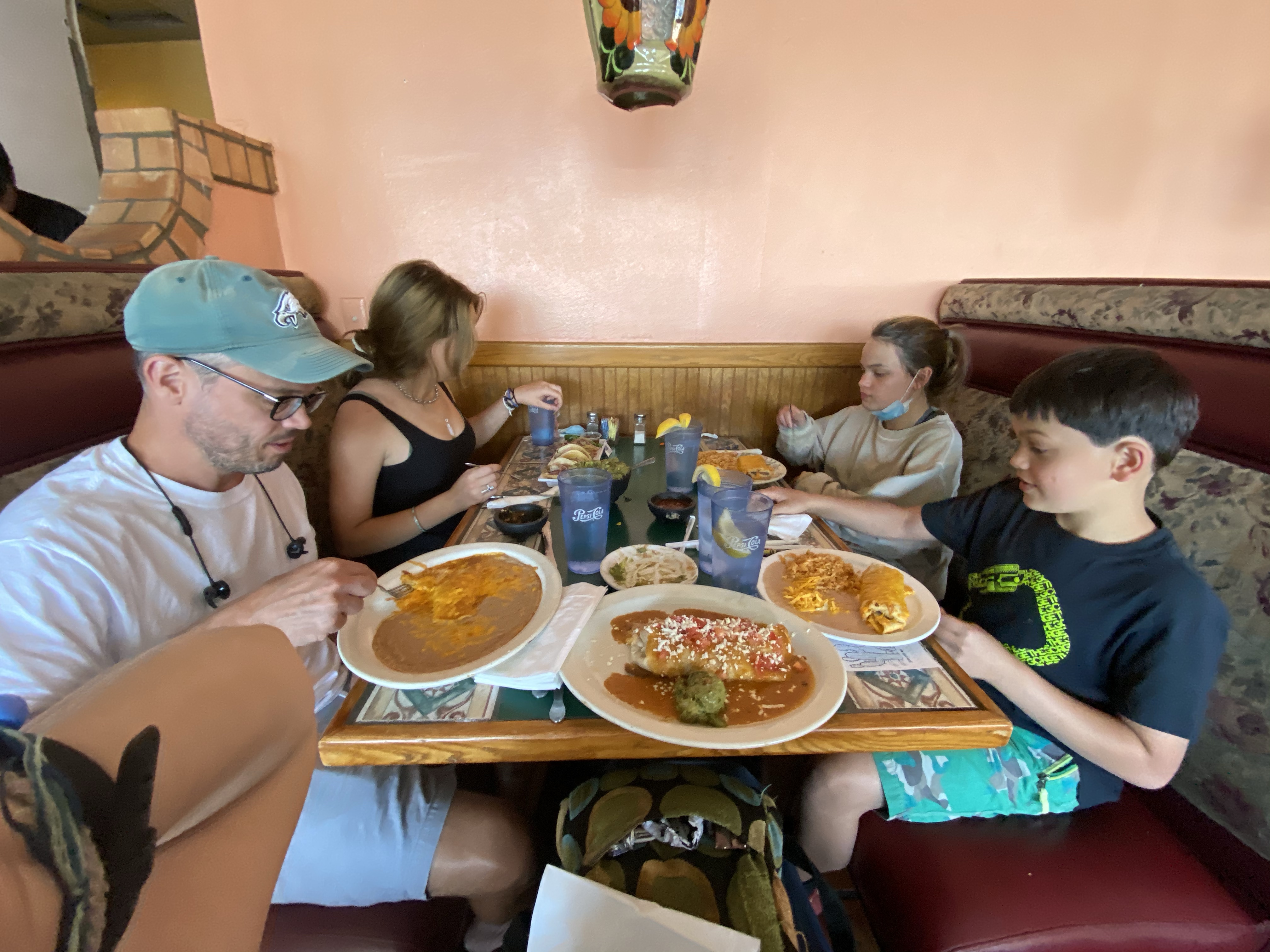 Heather – seeing Tatum run outside to hug Goodnews; watching the kids play and laugh in the pool at night; dinner at the Mexican restaurant where we pranked Kevin by putting salt and sugar in his water; seeing the kids laughing in the back of the rented minivan; pizza dinner at Megan’s house and having our kids meet each other. Tatum asking me to ask for prayers for her at Church of the Red Rocks. Clara and Tatum holding hands in the pew. Having my mom and children next to me in church. Lowlights: thinking about saying goodbye to Tatum, saying goodbye to Tatum, seeing Finn’s heart break saying goodbye to Tatum. Tatum’s silent tears in the back of Mom’s and Doug’s car.