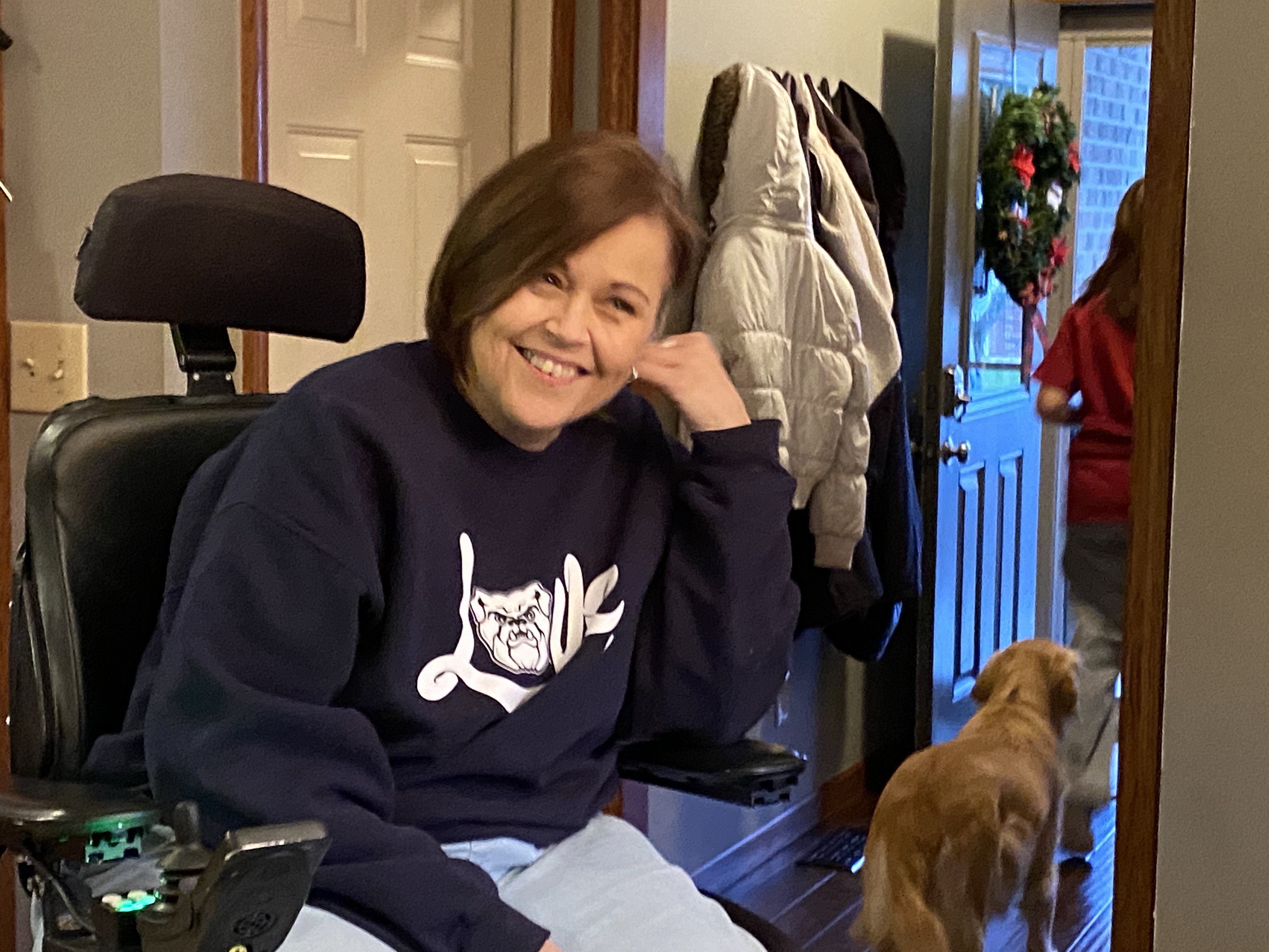 Heather – talking with the family in the kitchen and watching swimming and talking to Brooks and having sleepovers with the girls. Hearing Kathy whistle to call Marley.