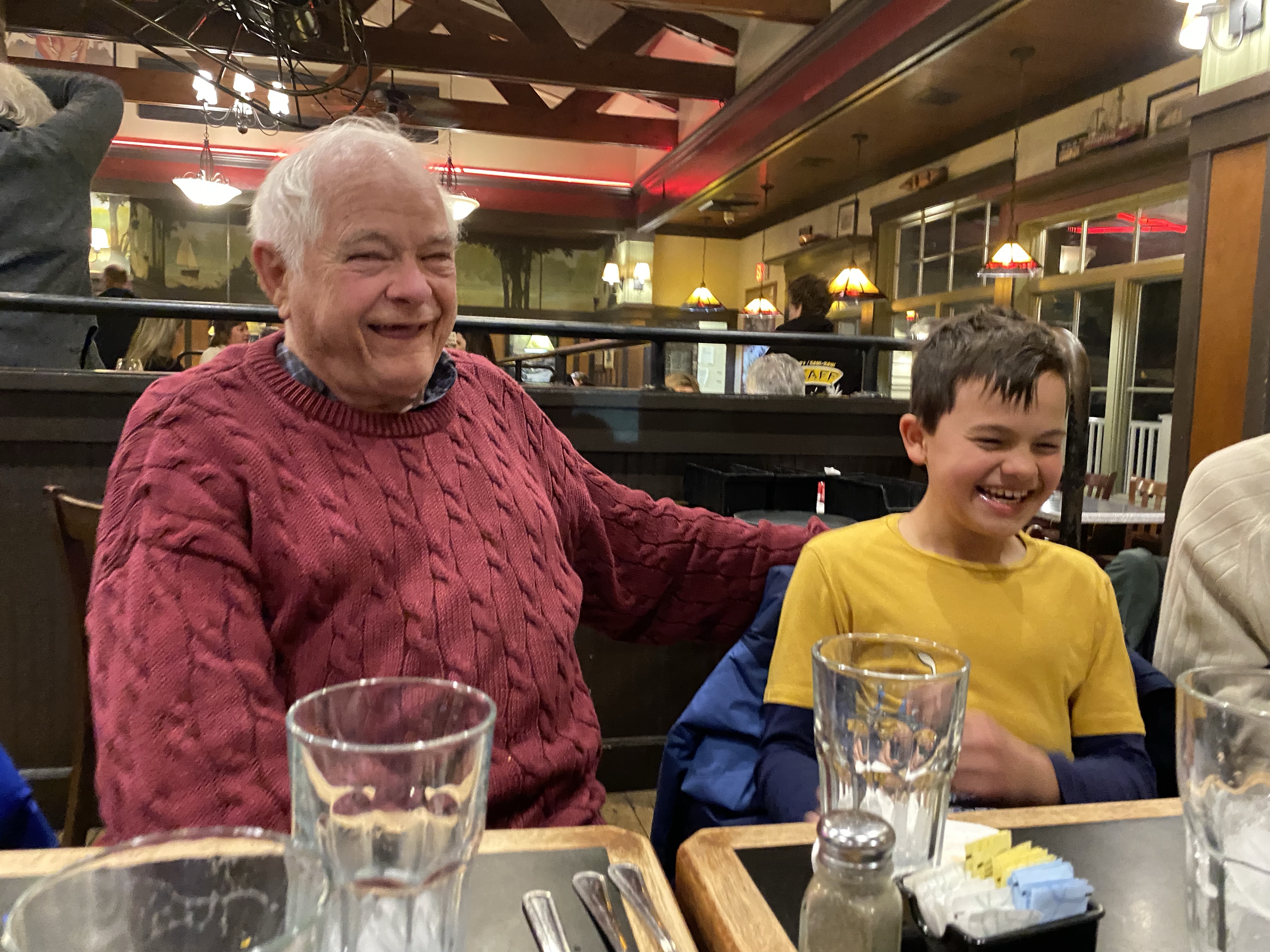 Clara – playing ping pong, going to the restaurant last night with Goodnews and Grandoug, and the pink Jeep drive.